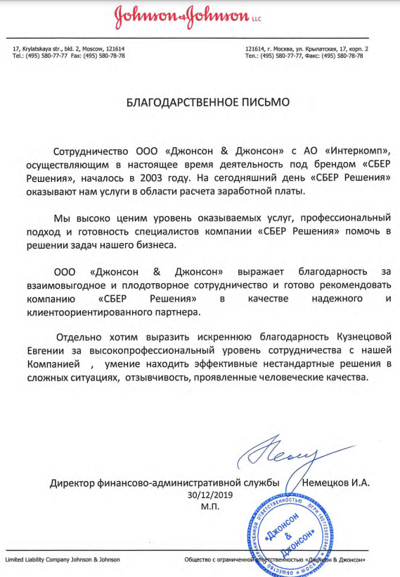 Сотрудничество ООО «Юбисофт Игры» с компанией Интеркомп началось в 2014 году. На сегодняшний день СберРешения являются нашим партнером по оказанию услуг в области расчета заработной платы, бухгалтерского учета, юридических услуг и кадрового администрирования. ООО «Юбисофт» выражает благодарность за плодотворное сотрудничество, и отдельно хочется отметить прекрасную работу команды бухгалтеров.